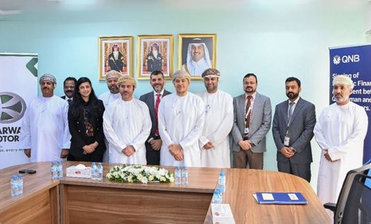 The agreement was signed by Dr. Ibrahim Al Balooshi on behalf of Karwa Motors, and Mr. Khalid Al Barwani, CEO of QNB Oman, in the presence of several senior officials from both sides.